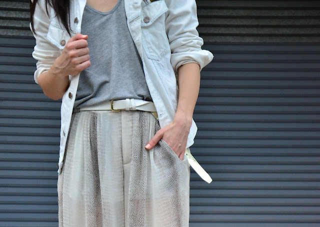 Today I made slight changes to the palazzo outfit. For me little changes are big changes. As you can see I wear again denim jacket but this one is white tie-dye and it's oversize so that completely changes the look. Also kept it monochromatic with a touch of color in the sunglasses. I am wearing all ZARA, denim jacket NUDIE JEANS. |